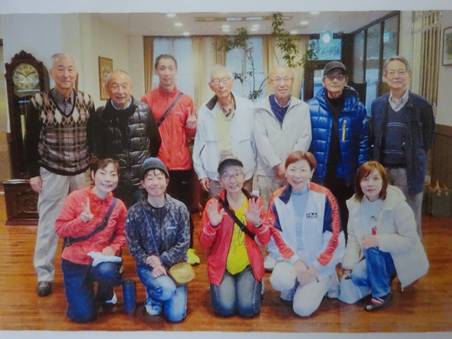 前列:左から、山本さん、林さん、西栗夫人、林さん長女 後列:柏さん、英保氏、松下氏 (横浜から参加)、小生、小川氏、西栗氏、の皆さん。 ![]()